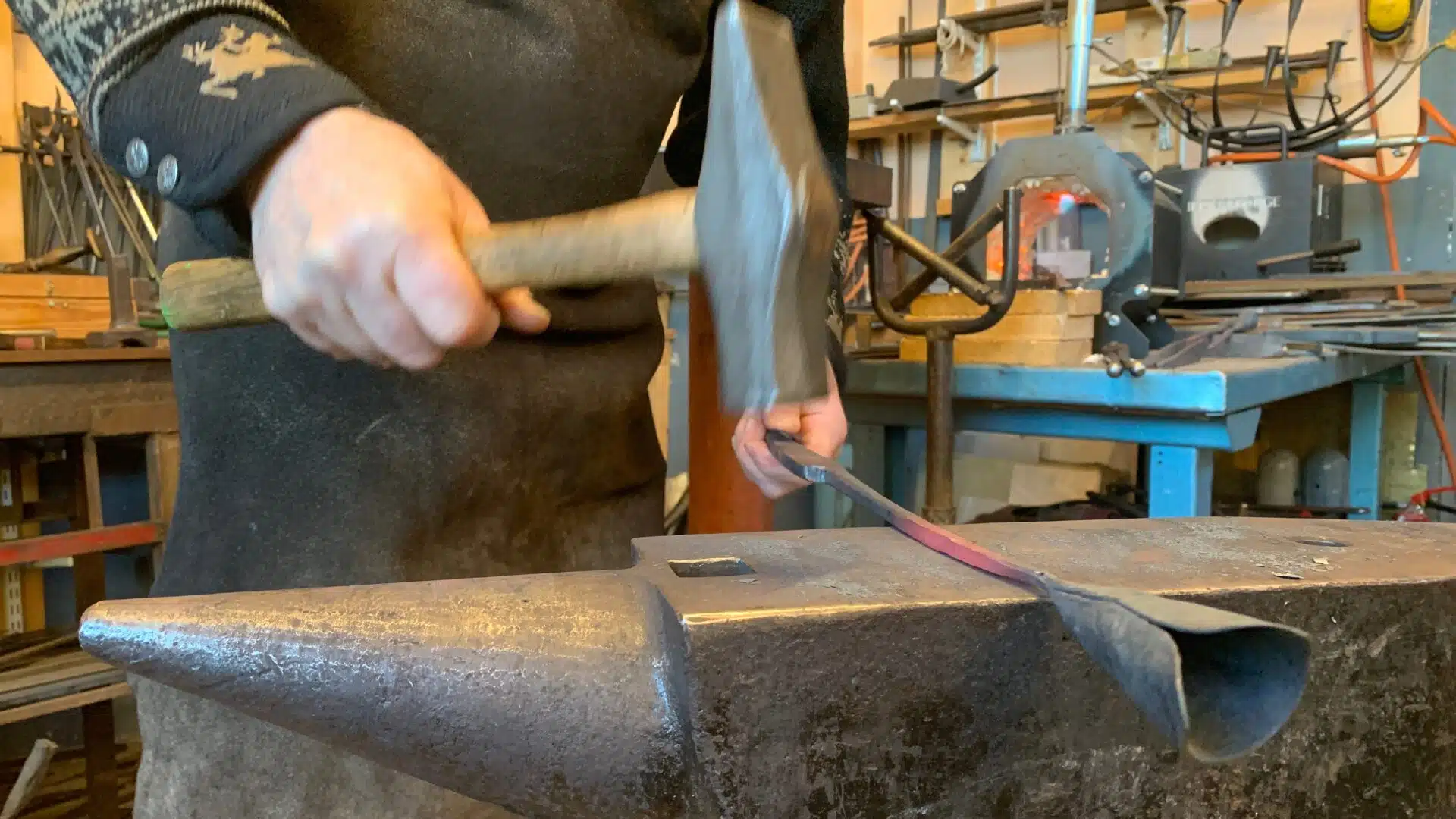 Alla besökare är välkomna att titta in då hammarslagen hörs klinga ut genom smedjans dörr!