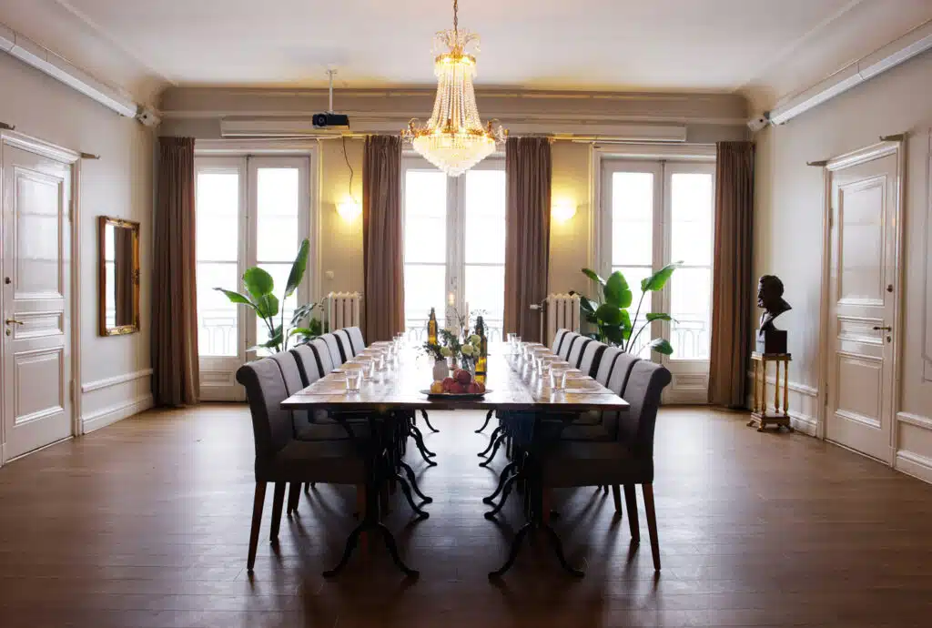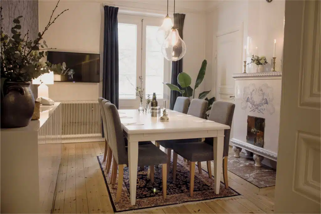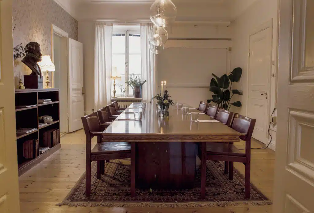Då på 1920-talet: användes det som vävstolsrum när kvinnorna i hushållet vävde och gjorde handarbeten. Idag: Med sina franska fönster som blickar ut mot parken och Aspensjön samt den magnifika kakelugnen, är det inte så svårt att förstå varför detta är vår mest populära konferenslokal.